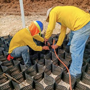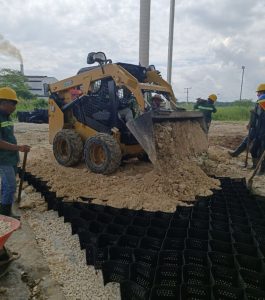 Sobre esta base se instaló una geocelda de 20 centímetros de espesor, también rellena con material local, logrando una estabilización eficiente y segura que permite el tránsito de cualquier tipo de vehículo.